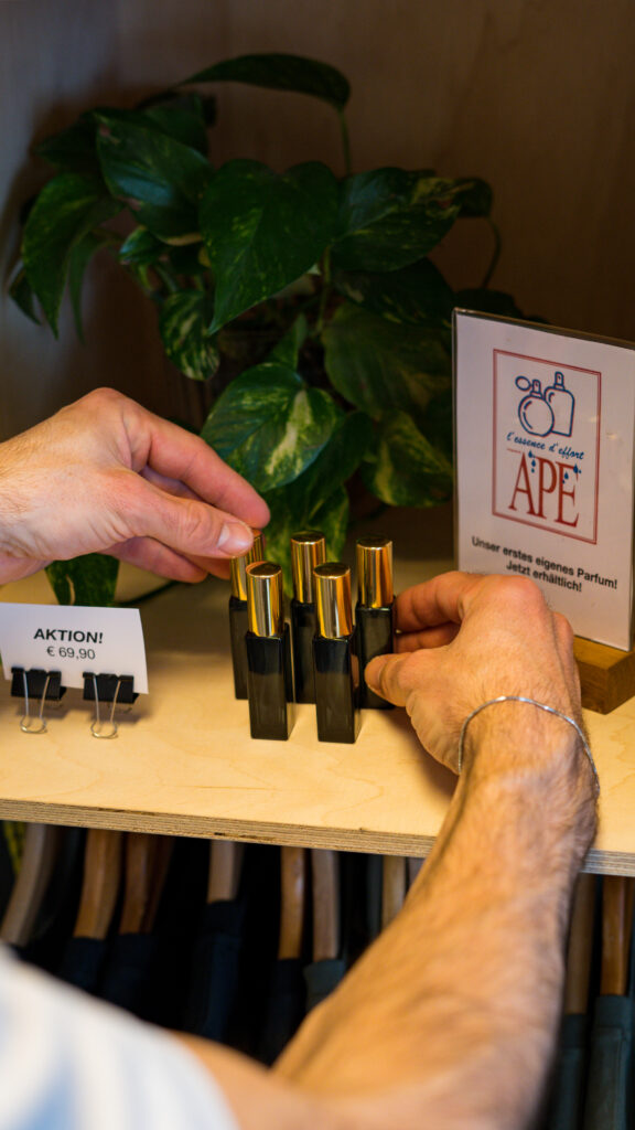 Unsere beste Idee bis jetzt: wir sammeln den Schweiß unserer Trainer*innen und produzieren daraus ein Parfum! l’essence d’effort – a fragrance by ape Einblicke in
