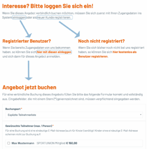 - Nach dem Einloggen ist ganz unten auf der Seite die Anmeldung freigeschaltet: